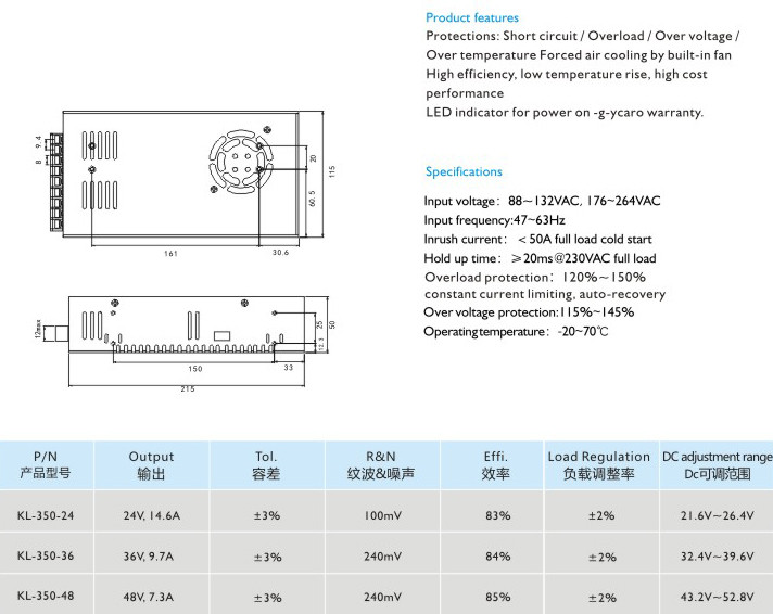 高效率、低溫升高性?xún)r(jià)比 適用于LED顯示、工業(yè)控制 輸入電壓:88-132VAC,176-264VAC 輸入頻率:47~63Hz 沖擊電流:<50A滿(mǎn)載冷態(tài) 保持時(shí)間:≥20ms@230VAC滿(mǎn)載 過(guò)載保護(hù):120%-150%限流保護(hù),自動(dòng)恢復(fù) 過(guò)壓保護(hù):115%~145% 運(yùn)行溫度:-20-70℃" />